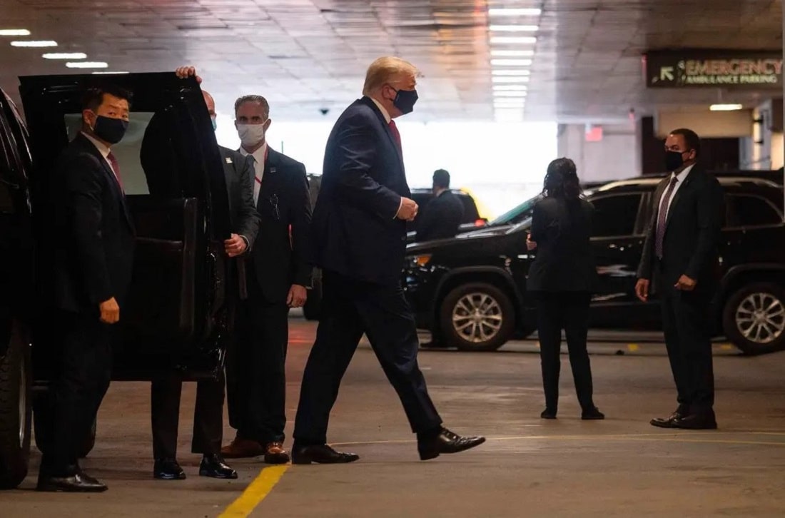El presidente ingresó al New York-Presbyterian/Weill Cornell Medical Center en Manhattan por la tarde con una máscara facial alrededor de las 4:15 p.m. y se quedó unos 45 minutos.