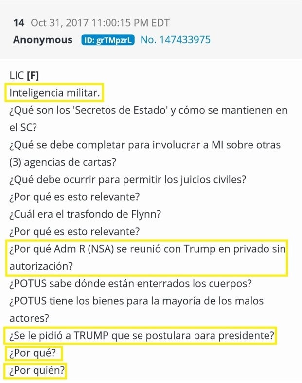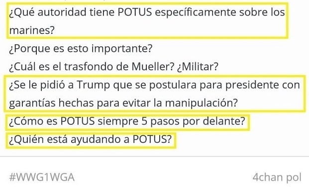 Bajo los “sombreros blancos” en el ejército de los Estados Unidos, reclutaron a Trump para que se convirtiera en presidente con un plan de más de medio siglo desarrollado por los “200 generales” después del asesinato de JFK para salvar la República de América. En la víspera de Navidad de 2016, las fuerzas especiales militares de Estados Unidos, eliminaron a las 13 familias malditas de la Cábala debajo de sus palacios en Venecia, durante sus rituales satánicos. A partir de ahí, el presidente Trump y sus “200 generales” planificadores militares ejecutaron la fase final del plan para destituir a la Reserva Federal, limpiar las agencias estadounidenses corruptas y romper el yugo del sistema de ley del almirantazgo británico, que incluye la Asociación de Abogados.
